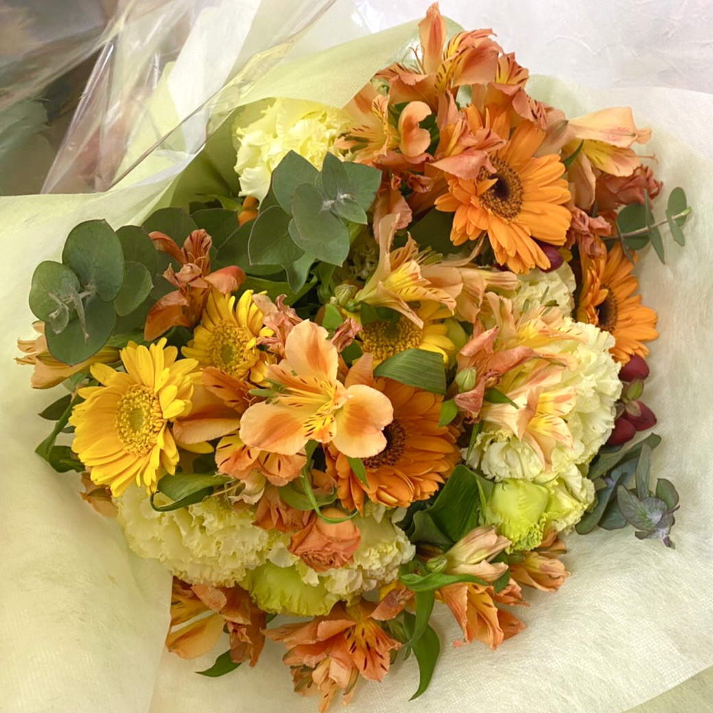 ◇◆オレンジや黄色のガーベラで纏められたブーケとオレンジ系のバラで纏められたブーケ ビフォーアフター◆◇