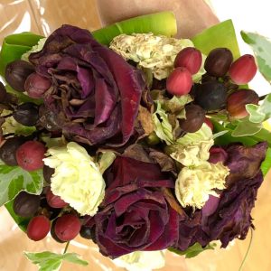 アフターブーケの制作工程では、お花の水分を特殊な方法で抜き乾燥させることで長期保存が可能になっています。