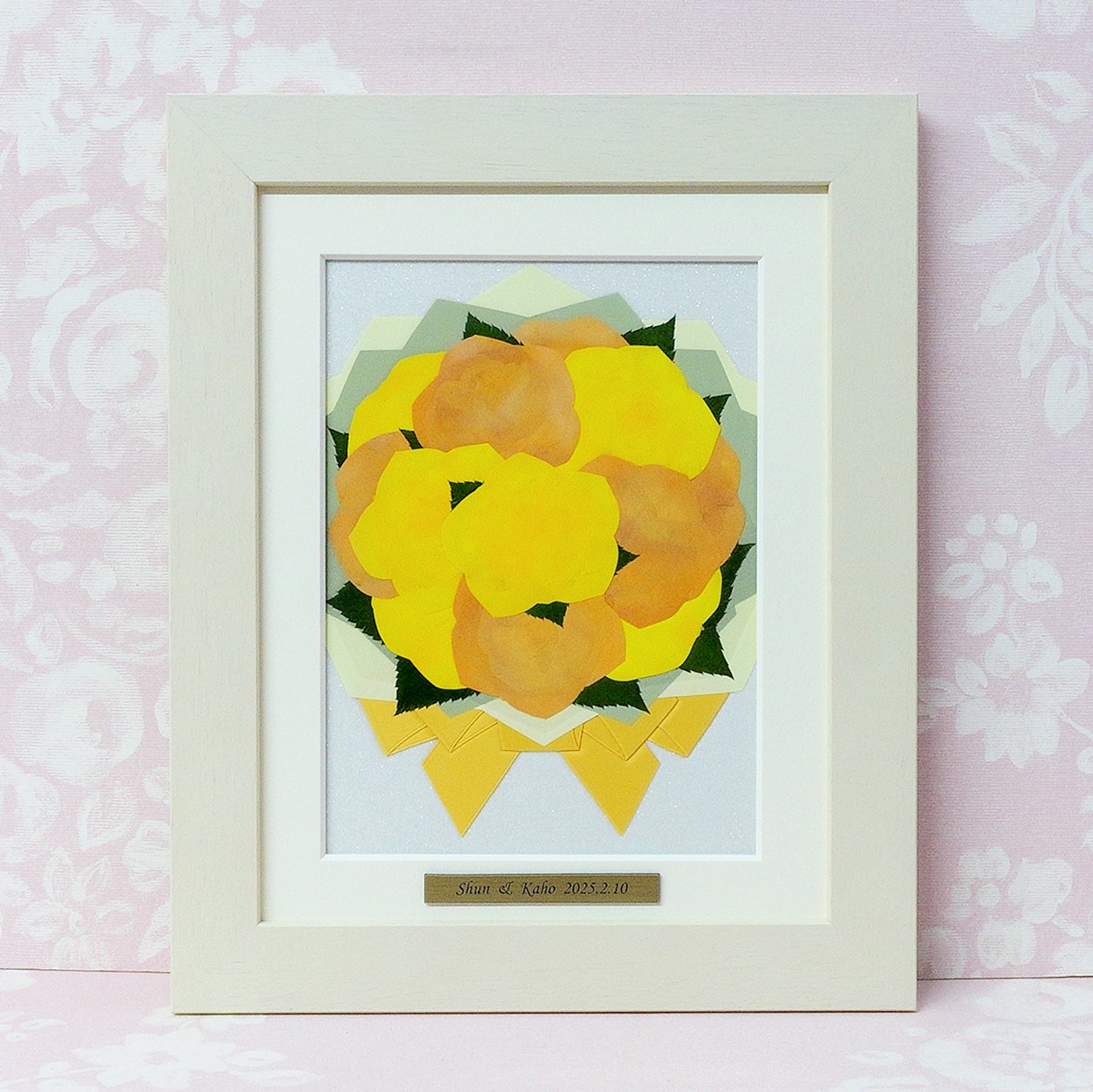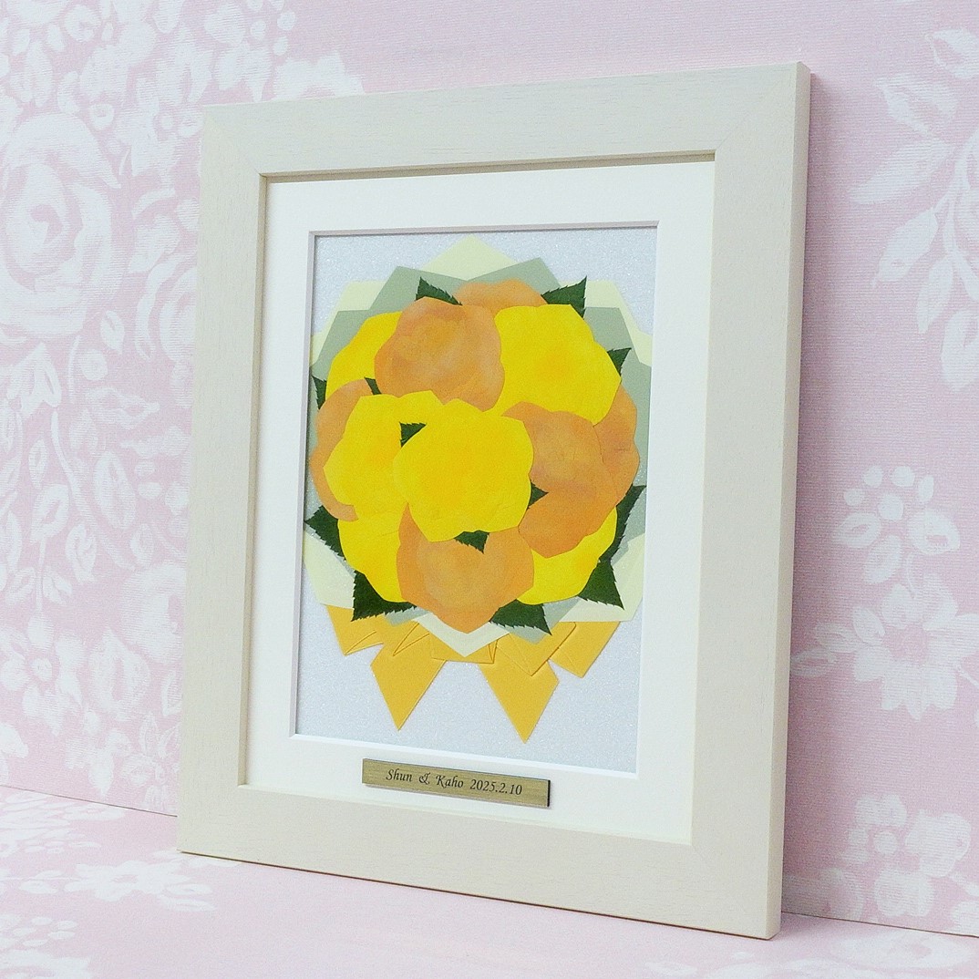 プロポーズの黄色バラとオレンジバラの花束を押し花に保存加工させて頂いたお客様からのご感想です♪
