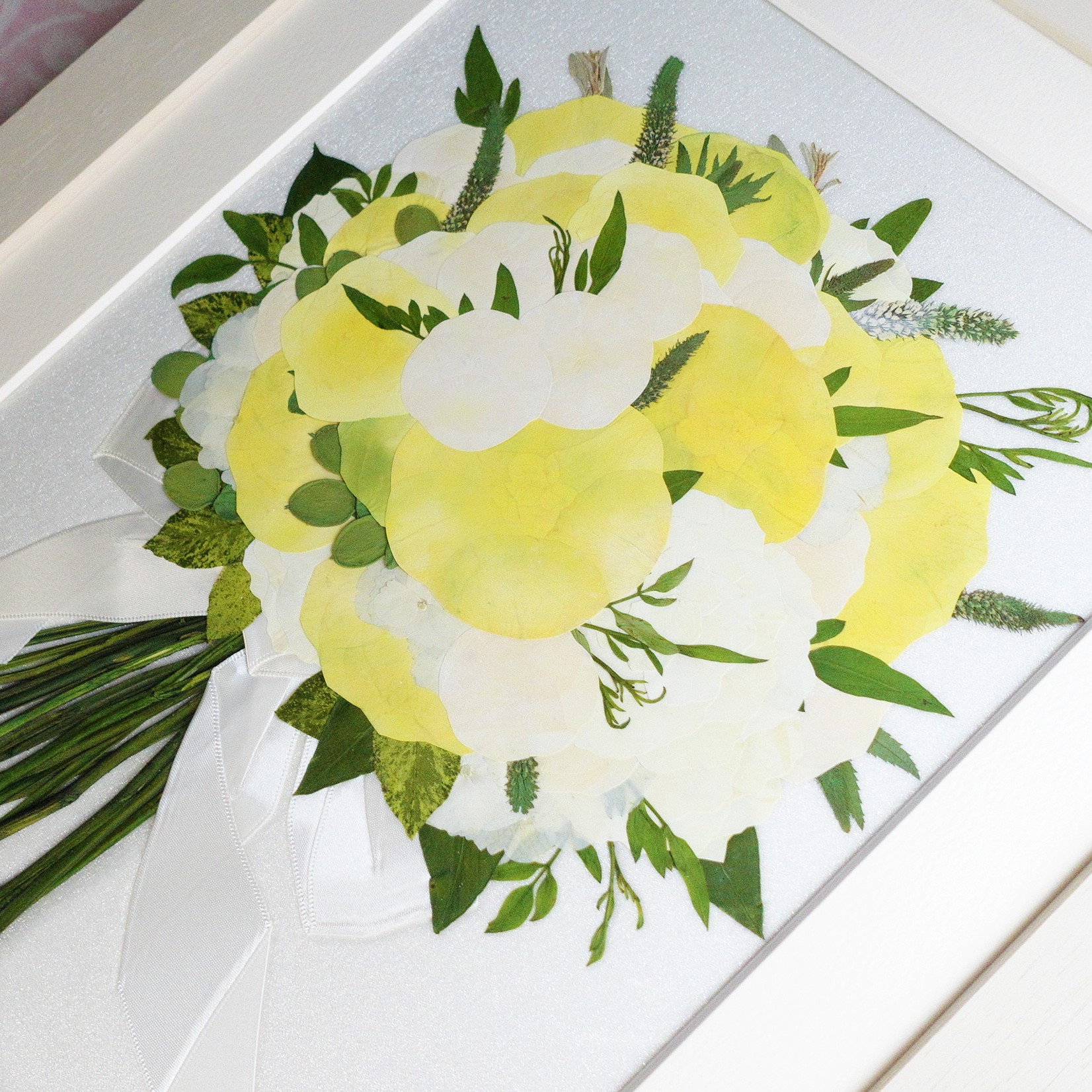押花のある空間で、結婚式当日の幸せな時間を感じながら、生活したいと思います。