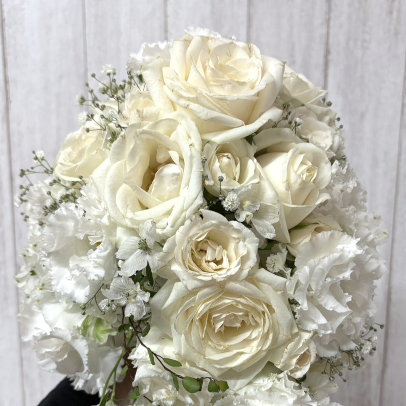 【白バラのラウンドブーケ 保存加工内容】
