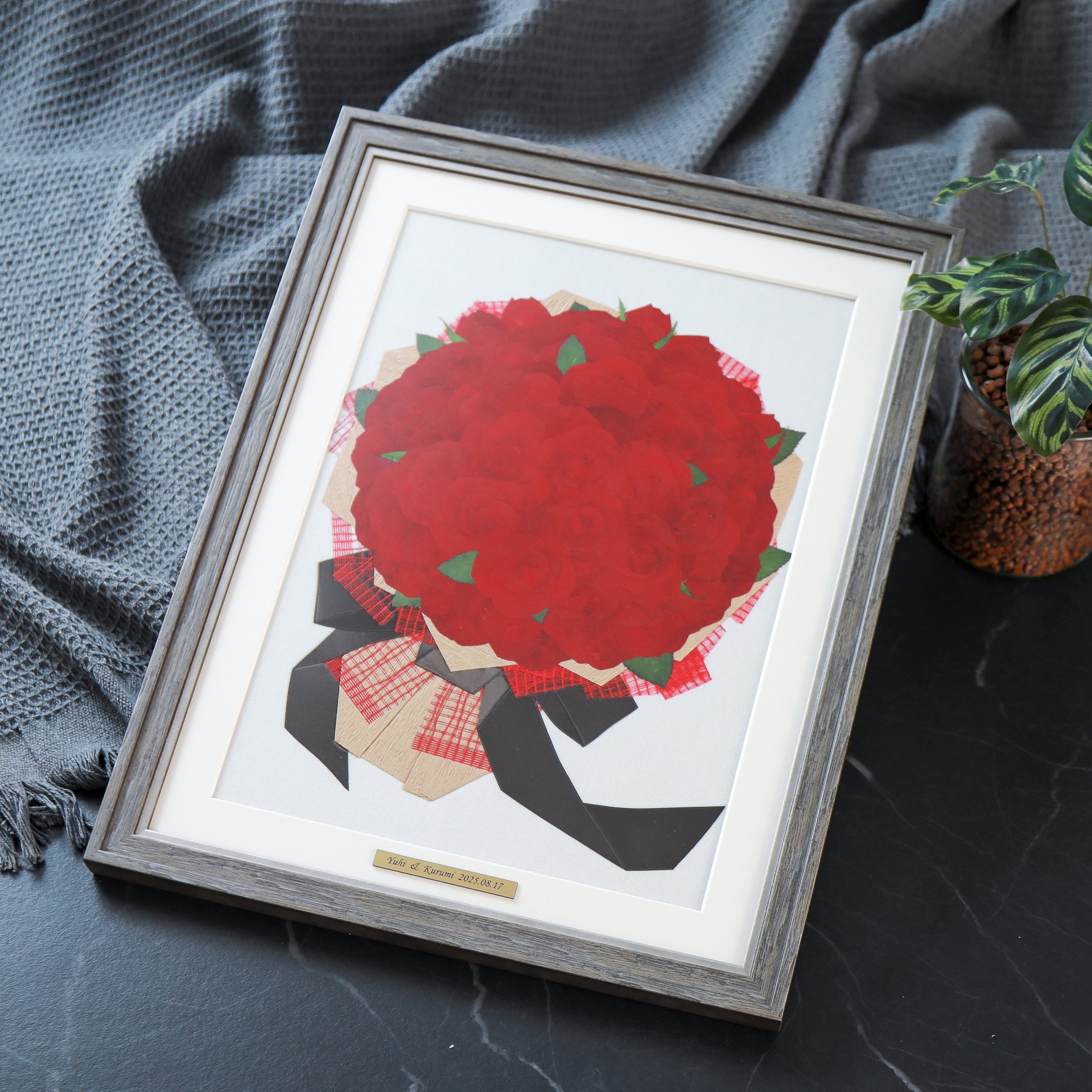 お花を束ねた“クラッチブーケ”の専用額!花束保存も◎