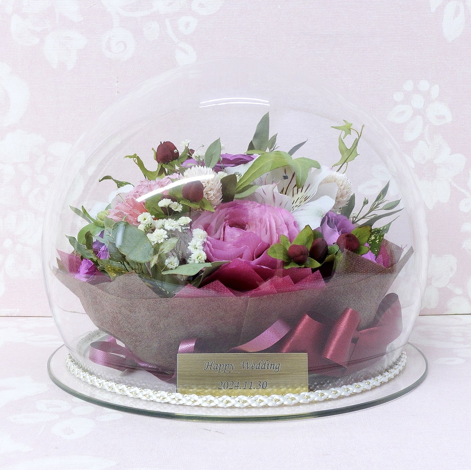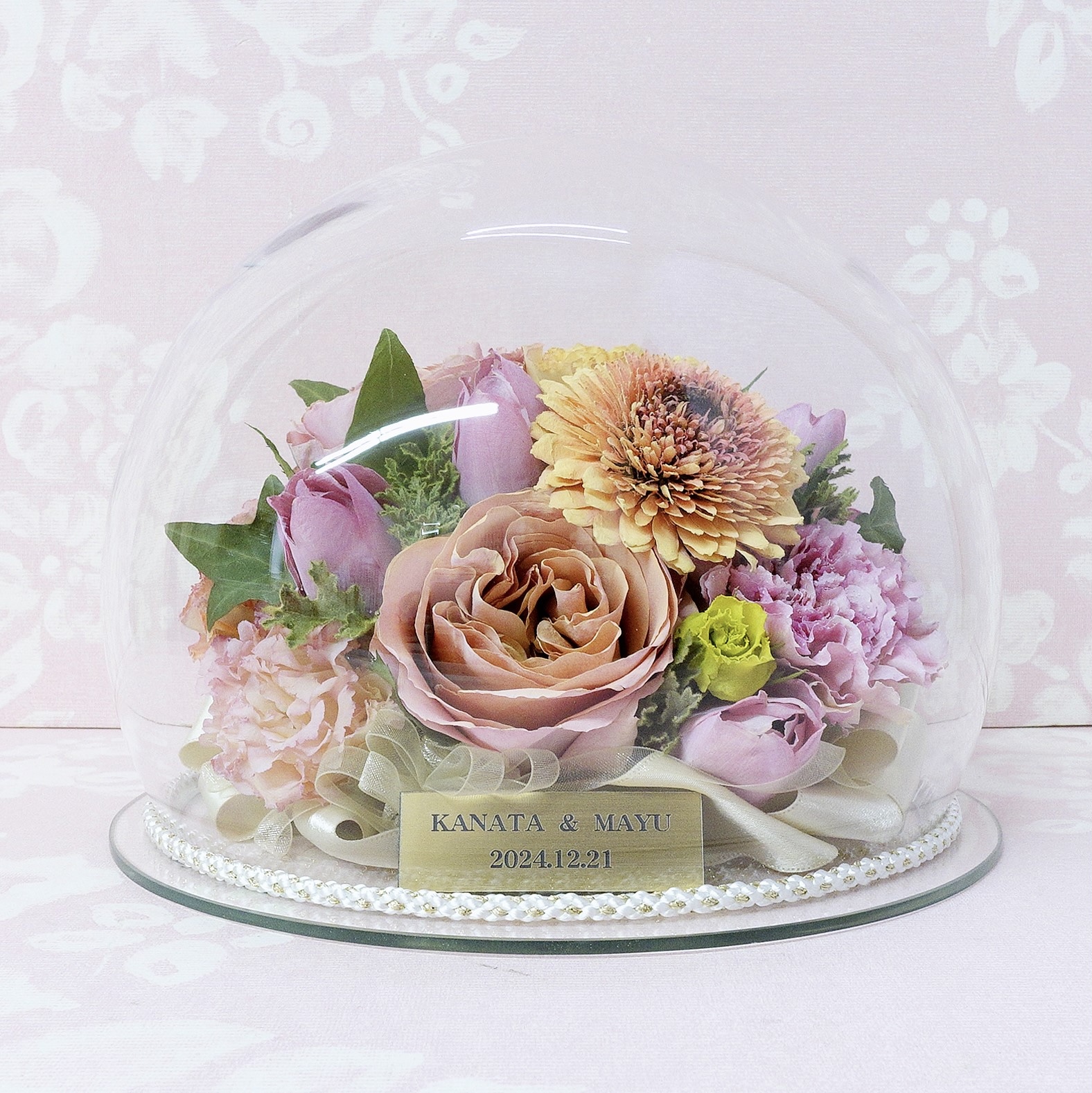 定番のミディアムドームより少し大きく、中に入るお花は1.5倍ほどアップ!お花のサイズによりますが、12輪のバラの花束もお入れできます。