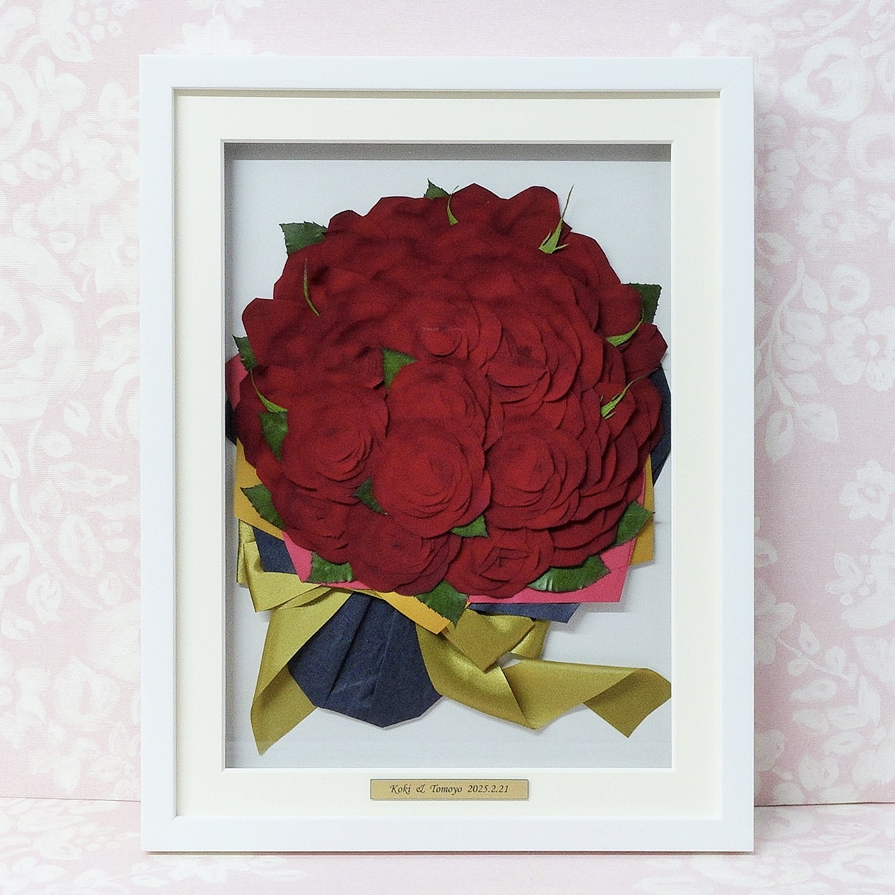 バラの花束の場合には大きさにもよりますが、30輪前後をお入れできる作品になります。(輪数は目安となります)